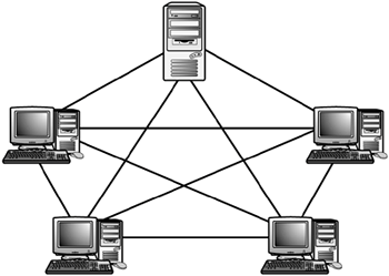 في هذا النموذج يرتبط كل جهاز مع جميع الاجهزه
